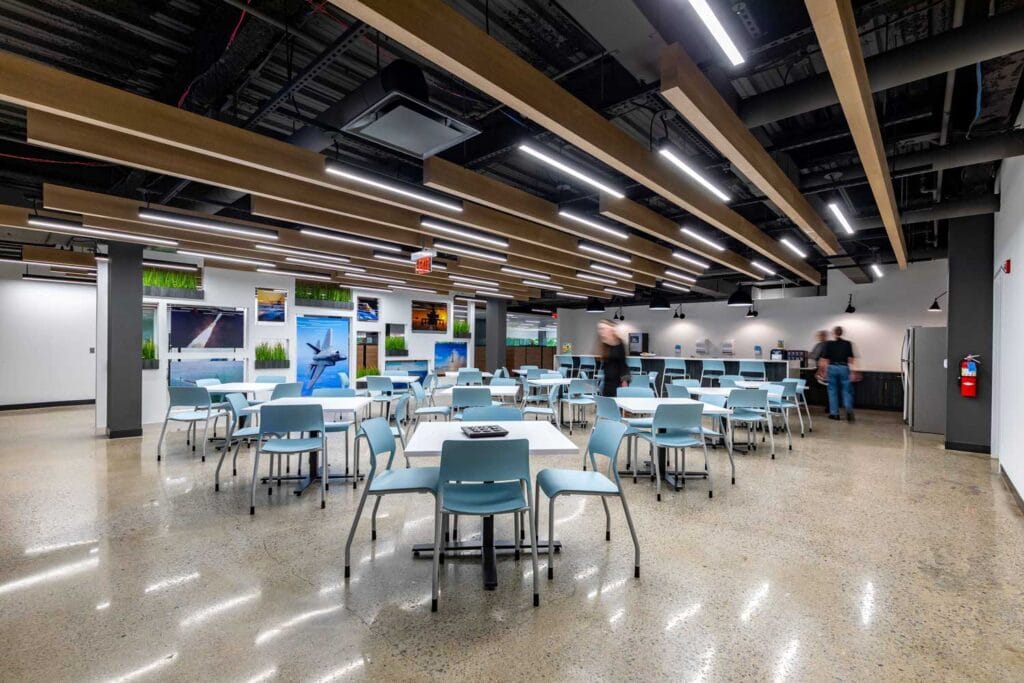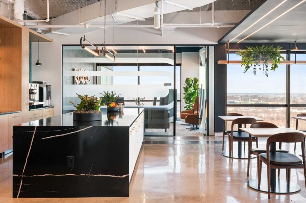 A well-designed café space can become the central hub where employees connect throughout the day.