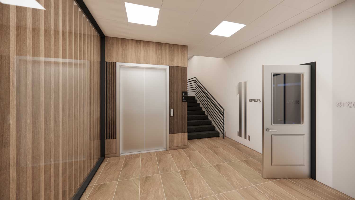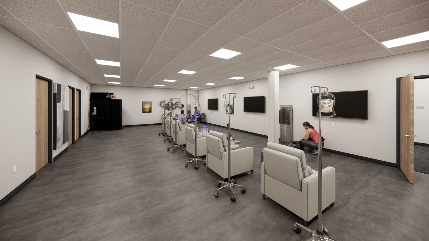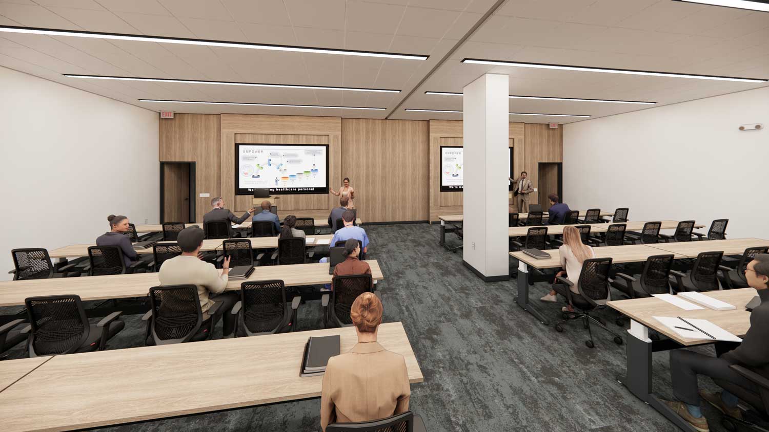 These visuals are architectural renderings created by RI Workplace to help the client envision their future space.