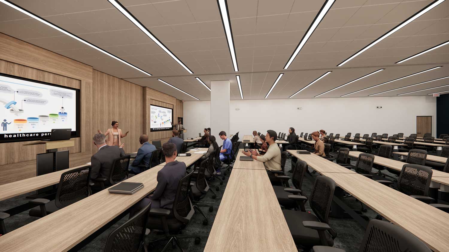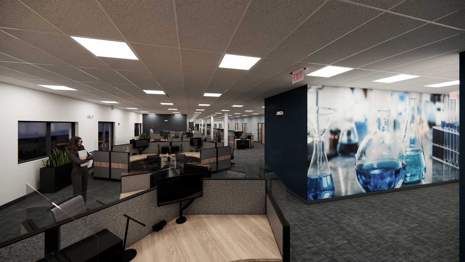 A nationally recognized pharmaceutical company, known for its groundbreaking personalized medications was expanding their New Jersey operations. With a growing team and evolving technical demands, the company envisioned a world-class campus that would combine cutting-edge laboratories with a workplace culture rooted in care, innovation, and employee wellbeing. They wanted an environment that would streamline operations, encourage collaboration, and reduce stress, while advancing their live-saving product developments. To quickly bring their vision to life, they reached out to RI Workplace for a full-scope campus interior design, from space planning through to 3-D visualization.